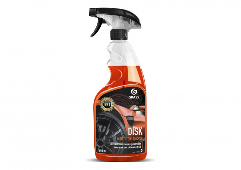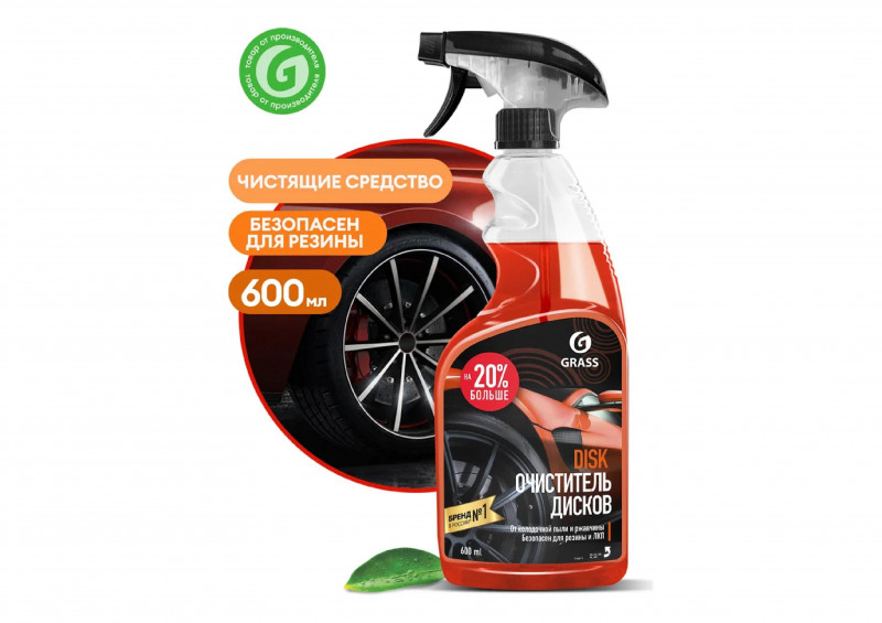 Очиститель колесных дисков Grass Disk, 600 мл 110373 эффективно удаляет тормозную пыль, известь, налет ржавчины и другие дорожные загрязнения. Очиститель подходит для стальных и окрашенных алюминиевых дисков, безопасен для хромированных и никелированных деталей. Обработанная поверхность приобретает блеск и обновленный внешний вид. Средство легко наносится, быстро действует.