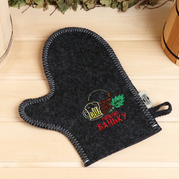 Рукавица для бани с вышивкой "Люблю баньку"