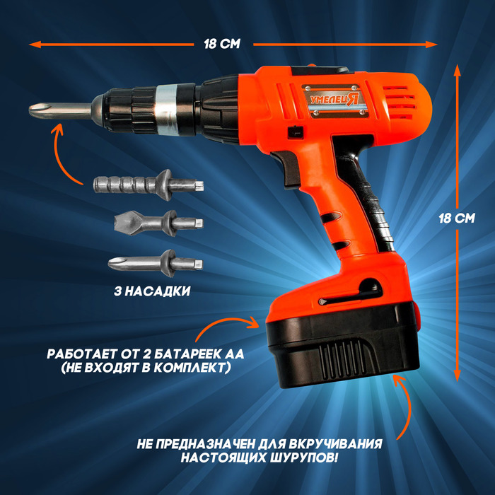 Игровой Набор инструментов Дрель 3 насадки работает от батареек