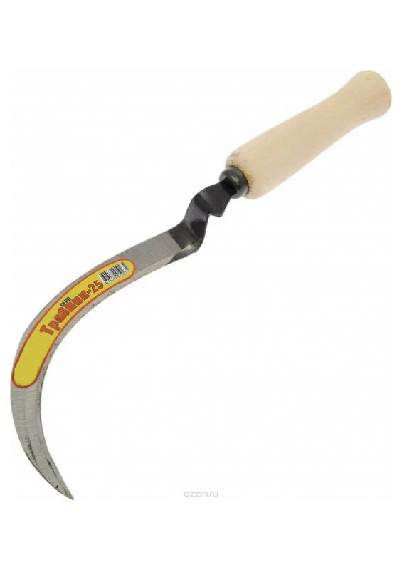 Предназначен для скашивания травы на дачном участке, а так же для заготовки корма домашним животным. Лезвие инструмента выполнено из высококачественного металла, а рукоять из дерева.