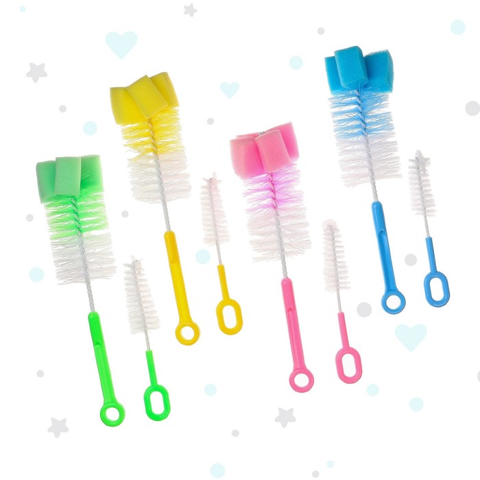 Набор ершиков для бутылочек и сосок, цвета микс