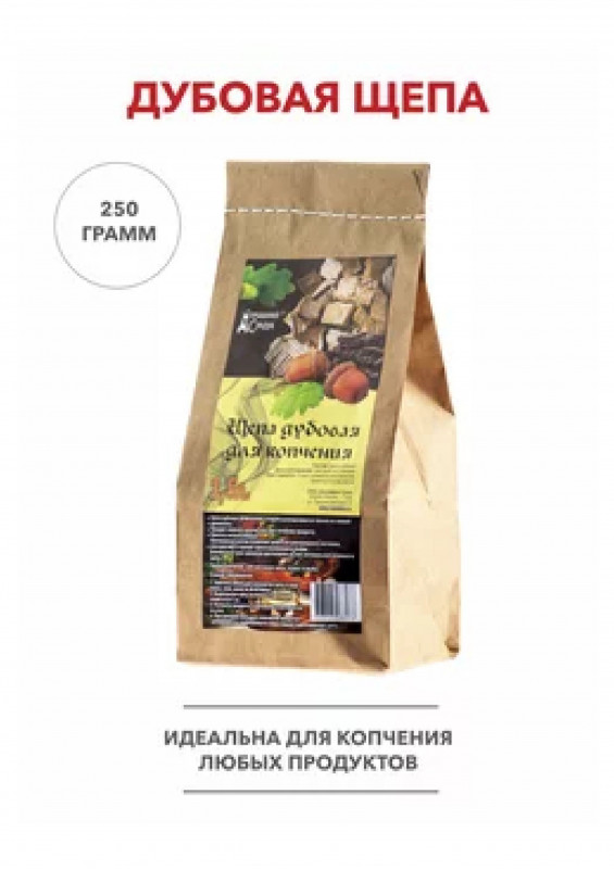 Дубовая щепа рекомендуется для копчения всех продуктов, кроме рыбы и кролика. Щепа из дуба придает продуктам красивый коричневый или темно-желтый цвет. Щепа для копчения дубовая используется во всех видах коптилен горячего и холодного копчения. Чтобы приготовить ароматные копченые продукты нужно увлажнить щепу и уложить ее на дно коптильни, сверху на решетки разместить продукты. Также ее можно использовать для дымогенератора. Упакована щепа в бумажный пакет, что позволяет "дышать" продукту. Возьмите щепу и создайте свой кулинарный шедевр. Ваша семья обязательно это оценит! Чистая древесная стружка хорошо тлеет и не тухнет. Опилки дубовые не образуют копоть и не содержат сторонних добавок