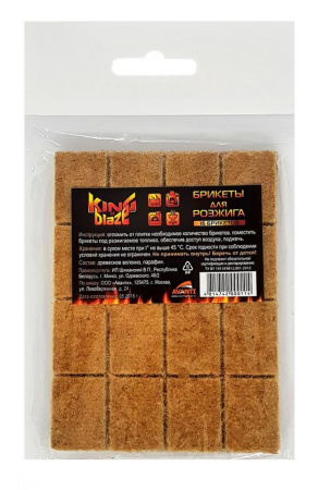 Специальный состав брикетов для розжига дает возможность более длительного горения. 1 кубик горит ровным пламенем на протяжении 8-9 минут. Брикеты изготовлены из прессованной древесины и пропитаны парафином. При горении брикеты не выделяют острого запаха и не дают копоти, поэтому приготовленные продукты будут иметь свой неповторимый аромат. Парафин, которым пропитана прессованная древесина, позволяет использовать их и в сырую погоду.