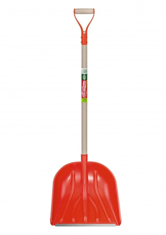 Лопата для уборки снега оснащена прочным пластиковым ковшом с алюминиевой окантовкой внешней рабочей кромки. Прочный черенок из березы и металлическая рукоятка.
