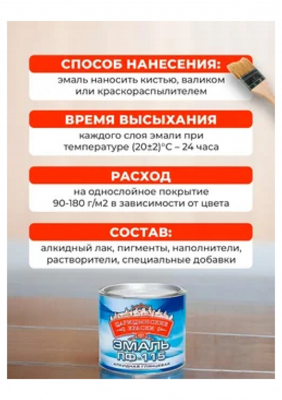 Способ нанесения: эмаль наносить кистью, валиком или краскораспылителем.