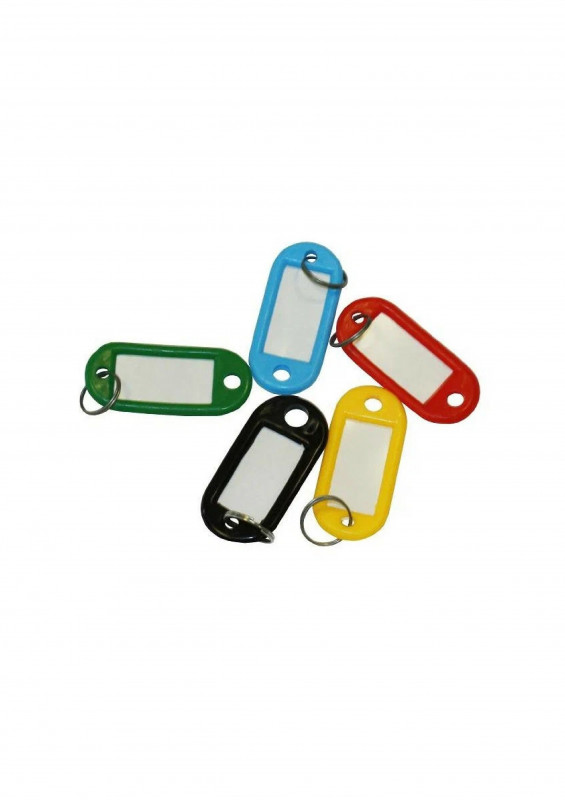 Пластиковая бирка для ключей с металлическим колечком. Бумажная этикетка защищенная прозрачной пластиковой пленкой.