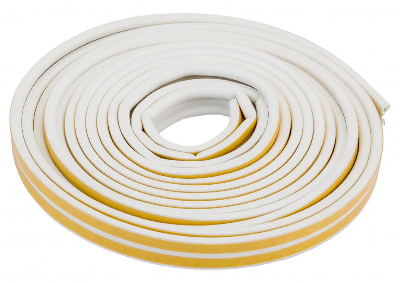 Уплотнитель бытовой резиновый WALLS Р-профиль самоклеющийся белый 10м