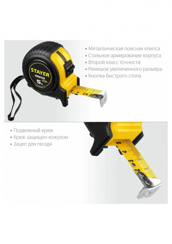 Инновационная рулетка 3402-5_z02 длиной 5 м от производителя STAYER - нужный элемент для проведения разных замеров. Она станет незаменимым помощником при работе дома, в профессиональной мастерской, в строительных работах или на дачном участке. На измерительную ленту шириной 25 мм из профессионального материала, нанесена хорошо читаемая шкала, устойчивая к стиранию. Эргономичный корпус с прорезиненным покрытием имеет удобный размер и хорошо лежит в руке. Фиксатор дает возможность зафиксировать линейку в любой момент