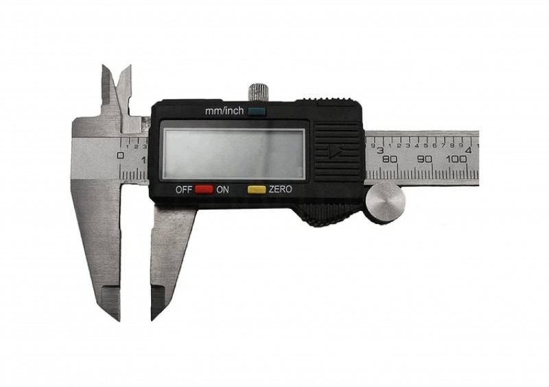 Штангенциркуль представляет собой удобный инструмент с цифровым дисплеем. Имеется возможность переключения режима отображения между миллиметрами и дюймами. Конструкция включает в себя глубиномер.