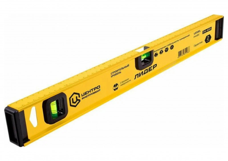 Уровень ЦИ ЛИДЕР Л4 600 мм. Имеет двутавровый усиленный профиль толщиной 3,6 мм, 3 акриловых колбы. Третья колба поворотная и позволяет выставлять необходимый угол. Оригинальная конструкция обеспечивает удобство при работе и точность при измерениях.