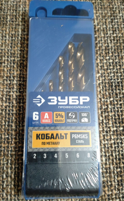 Набор сверл по металлу класс А 2-8мм 6шт ЗУБР КОБАЛЬТ